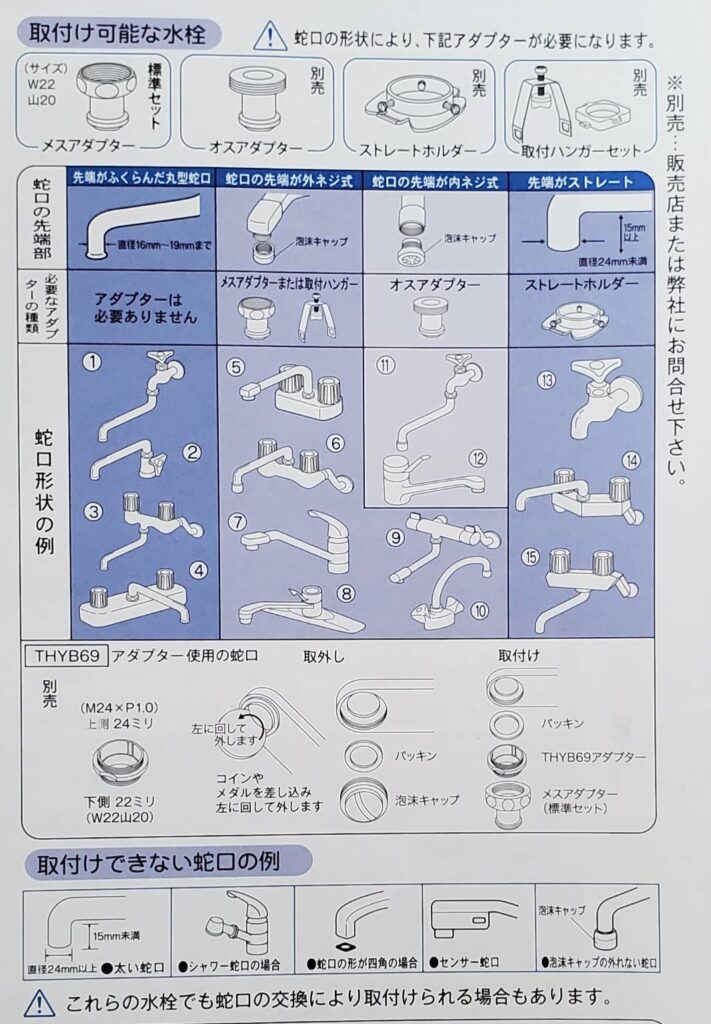 | 取付方法 | 蛇口取付型(蛇口口径[外径]13mm〜24mm) |